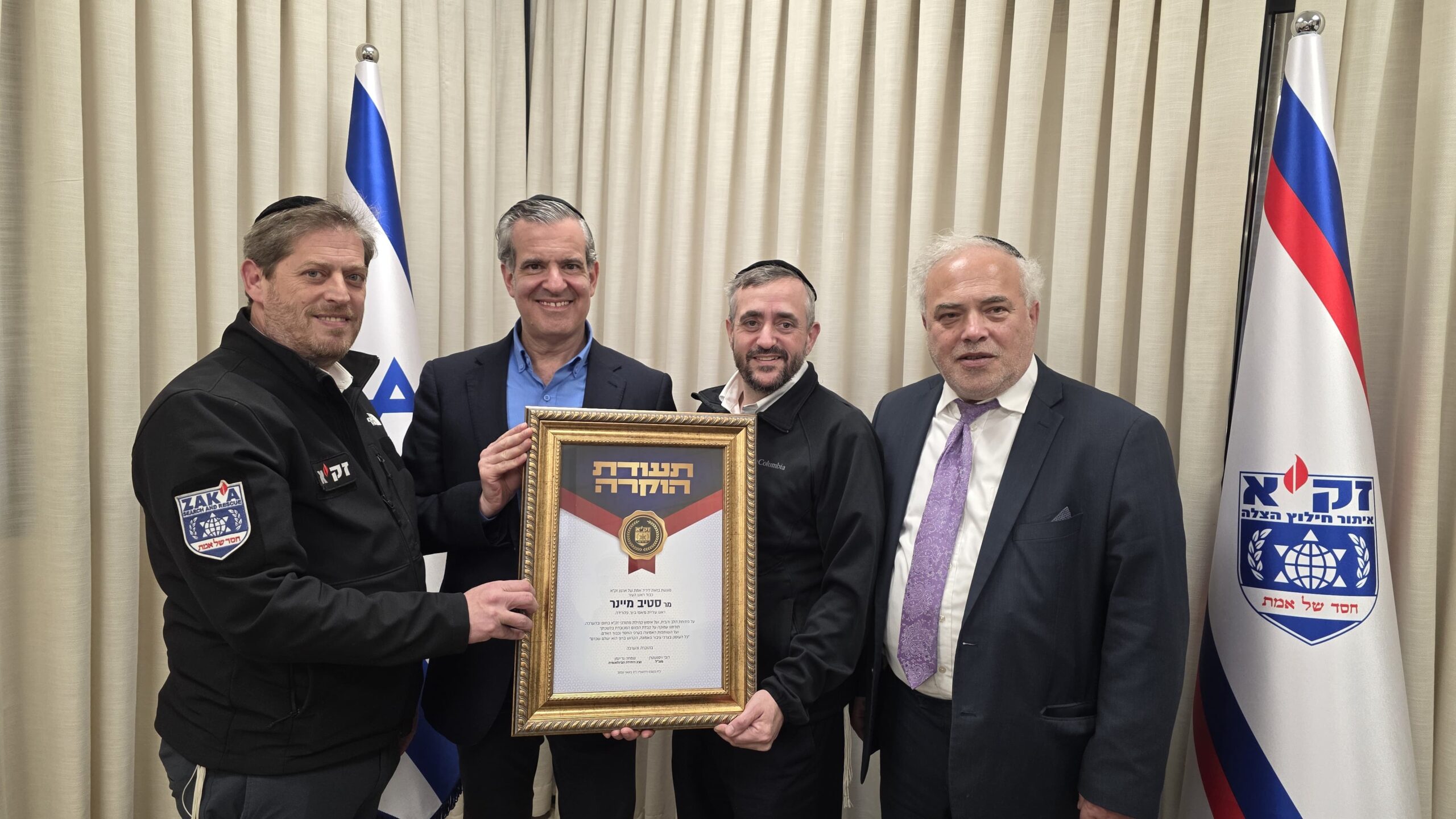 במעמד מרגש העניקו ראשי זק"א לראש העיר תעודת הוקרה מיוחדת, כהוקרה על תמיכתו רבת השנים, על פעילותו למען "חסד של אמת", ועל שיתוף הפעולה ההדוק בין זק"א לקהילה היהודית ולרשויות במיאמי. נציגי הארגון ציינו את קבלת הפנים החמה והסיוע המשמעותי שקיבלו בעת ביקורם האחרון במשרדו של מיינר במיאמי, שסייעו רבות לחיזוק פעילות זק"א בזירה הבינלאומית.