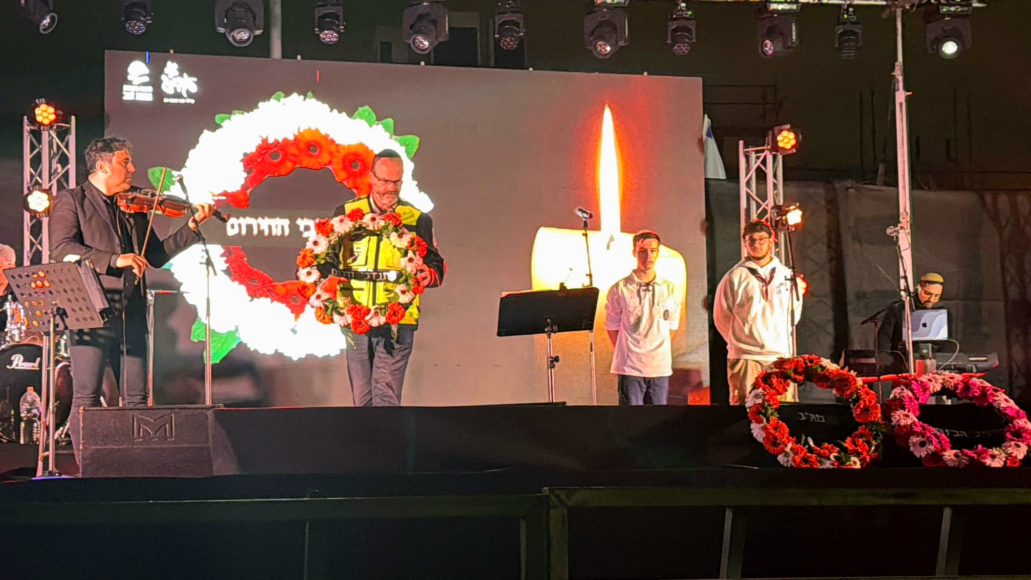 אהרון זנו, סגן ראש צוות זק"א בקריית מלאכי, מניח זר בטקס הזיכרון העירוני שנערך בקריית מלאכי.