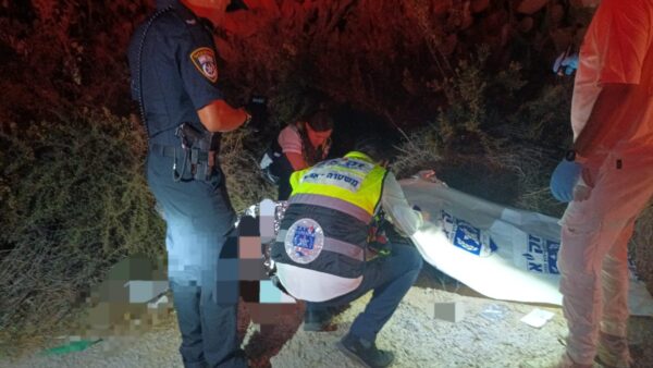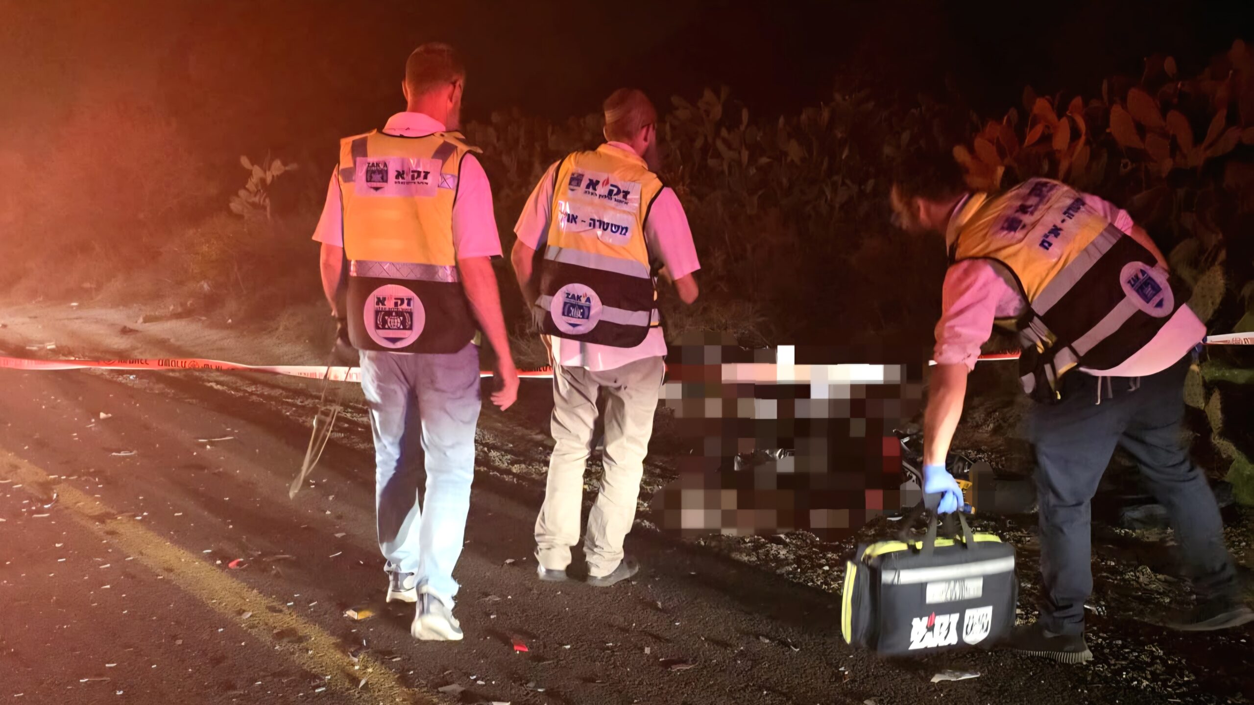 מתנדבי זק"א מרחב לכיש – צוות שדרות מטפלים בזירה בכבוד המת ובאיסוף הממצאים.